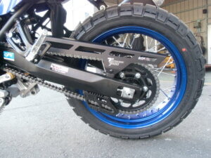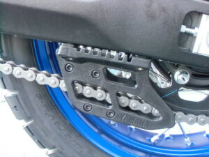オフロード走行時にチェーンが上下に動くのを防ぎ、制御します。