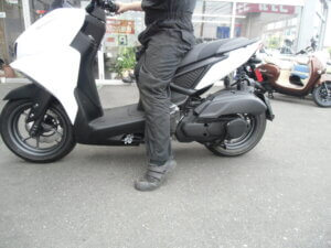 写真のライダーは身長169cm位、足短めでこんな感じです。