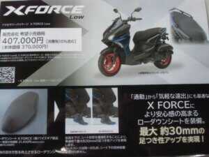 X FORCE Lowは最大30mmの足つき性アップを実現するローダウンシートを標準装備しました!