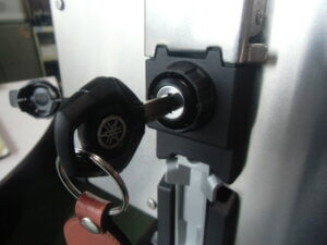 大抵このようにバイクの鍵とは別にリアボックス専用の鍵が必要になります→
